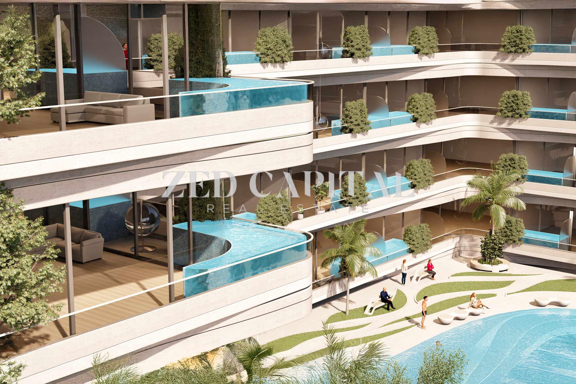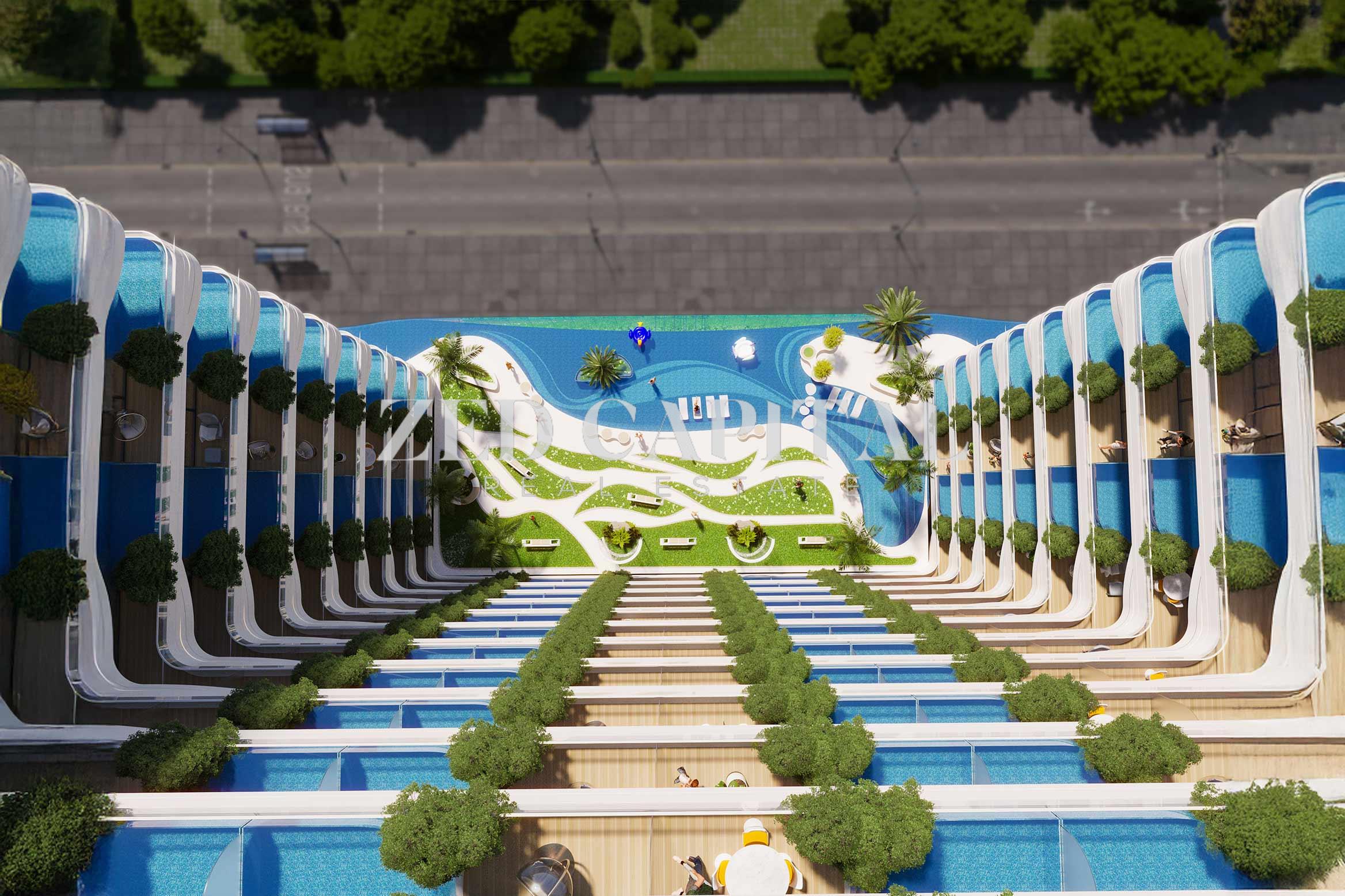 Zed Capital offers this bright and spacious 1-bedroom apartment with a private pool for genuine resale in the sought-after Samana IVY Gardens, Dubai Residence Complex.